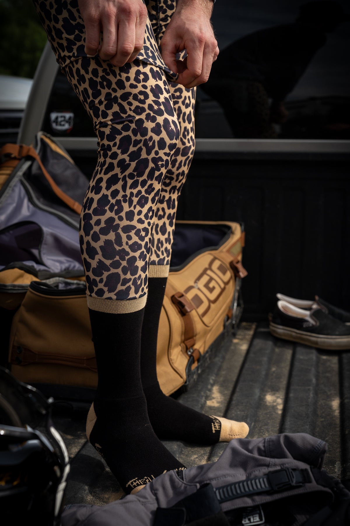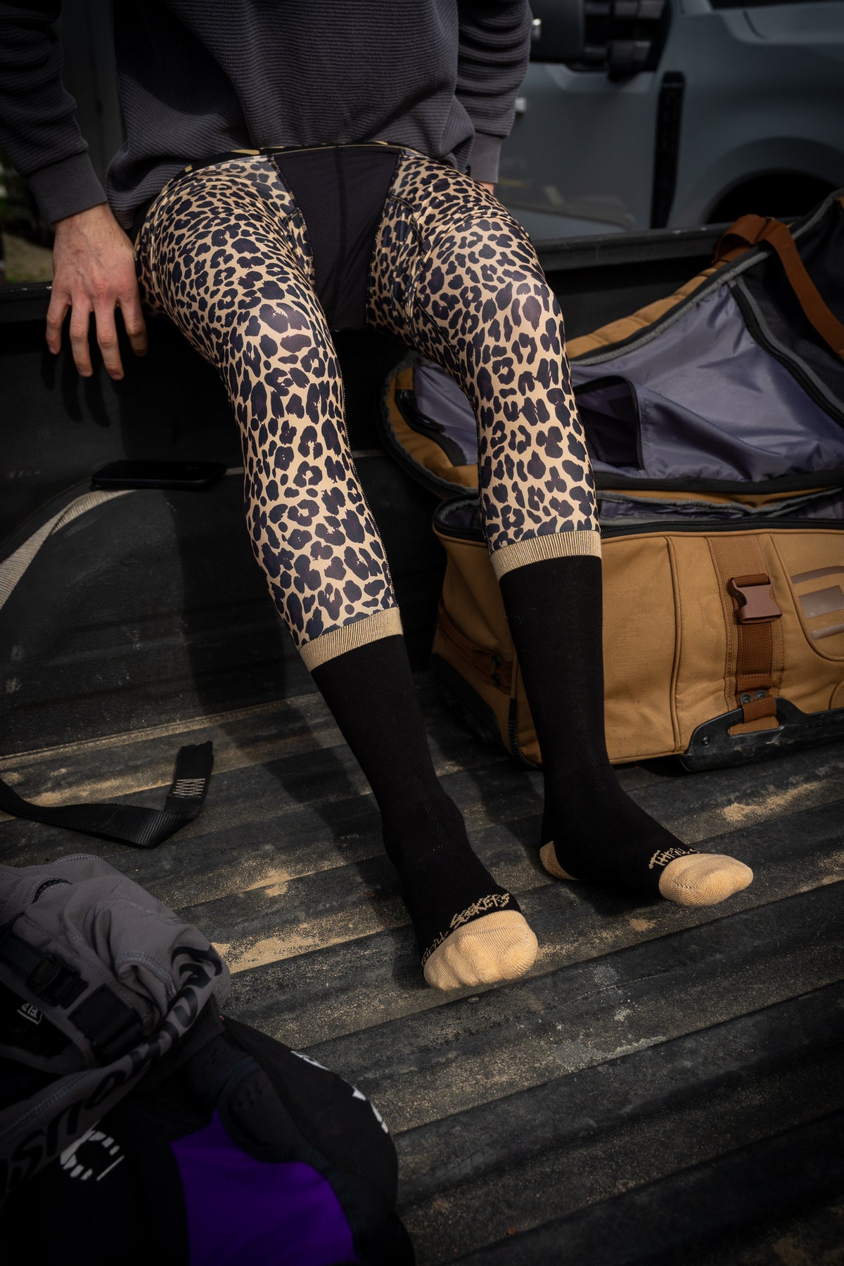 Athletic compression underwear with built in moto socks for a perfect one piece unit of under layer protection. Thrill Seekers Moto Leggings fit tight to your skin to prevent knee guards and braces from slipping and sliding into uncomfortable positions. And of course, with one piece, you won't ever have to worry about leaving one of your riding socks home alone. The compression provides increased blood flow to reduce fatigue, while allowing you to stay cool in high heat with ventilated groin area and sock region. We've recently updated our moto leggings to include a side pocket, adjusted fitment and more colors! These are an undeniable replacement to your traditional two piece moto socks.