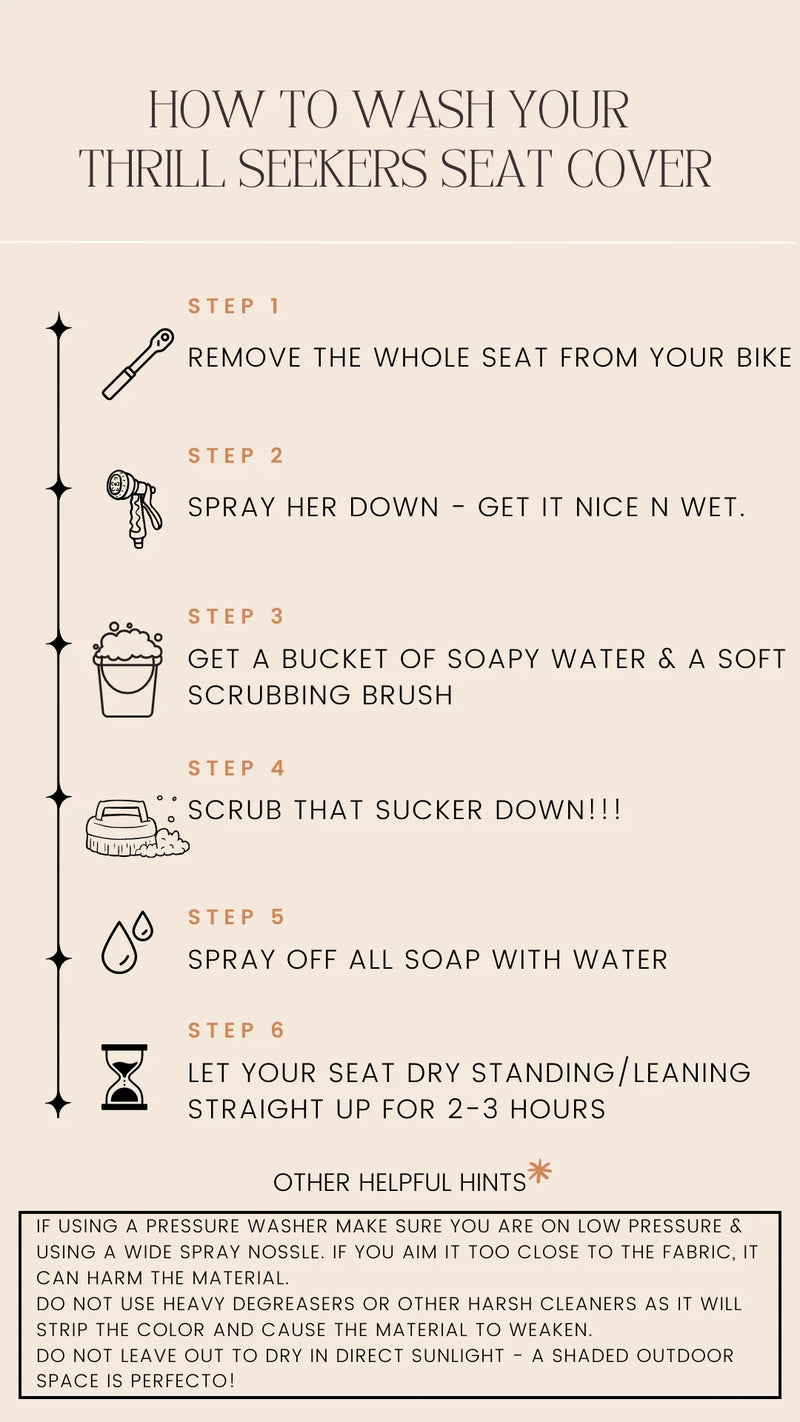 NO removing our Thrill Seekers back patch. Just like artists, this is our signature. This is our unique identifier to let others know how rad your seat cover is and where to get one!